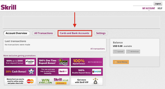 Tất cả những gì mà bạn cần để bắt đầu thanh toán đó là nhập thông tin tài khoản của mình. Thông tin này chỉ nhập một lần duy nhất và chủ tài khoản có thể thay đổi nó nếu họ có những thay đổi về thẻ hay tài khoản ngân hàng của mình. Chẳng hạn như thẻ hết hạn hay mất thẻ. Skrill hỗ trợ hầu hết các loại thẻ tín dụng từ Visa Credit, Debit đến Master hay Diners và American Express. Những gì bạn cần làm đó là: